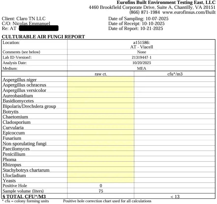 Following Claro's dry fog treatment, post-remediation testing showed mold spore levels returned to normal, safe ranges. The employee reported feeling better within days, and the musty odor that had plagued the office disappeared completely. The team was able to remain in the office throughout the process, with no demolition or extended downtime required.