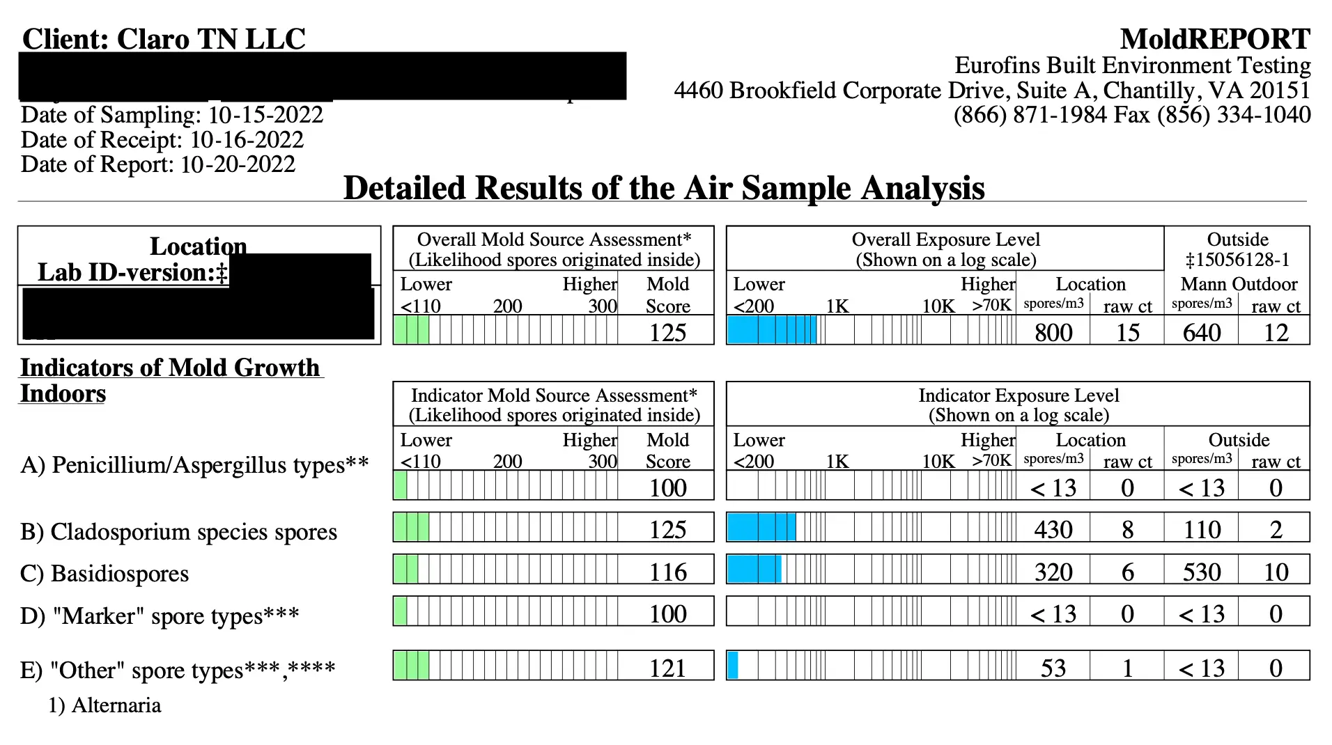 The results were shocking. Air quality testing revealed extremely elevated mold levels throughout the home. Indoor spore counts were drastically higher than outdoor levels, with dangerous concentrations of multiple mold species including Penicillium, Aspergillus, Basidiospores, and Epicoccum—the brown mold known for causing severe respiratory reactions.